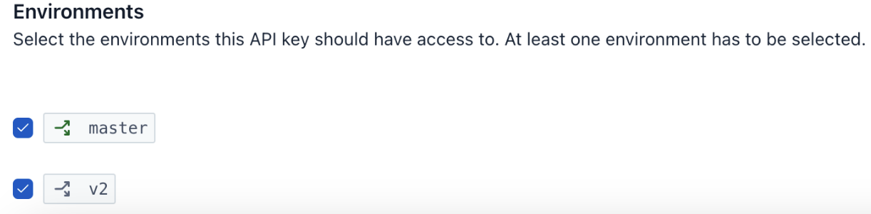 In order to get your code working with the new environment, we will need to update a few secrets as well as change some API token settings in the Contentful dashboard. First, go to “Settings” then “API keys” in the Contentful dashboard. Here, you may either create a new API key or provide your current development access token with access to the new environment. For my use case, I opted for the latter. In the specific access token settings, you will simply want to scroll down to the bottom and make sure both environments are enabled: